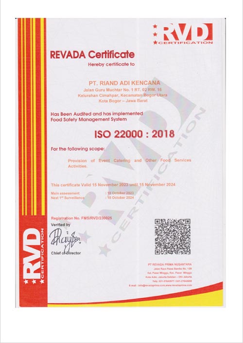 Riand Catering adalah sebuah Perusahan yang bergerak di bidang Food Service yang beralamat di JL. Guru Muchtar NO.01 Cimahpar Bogor Utara Kota Bogor, Riand Catering hadir sebagai salah satu perusahaan Food Service di JABODETABEK ber-mitra bisnis dalam memenuhi permintaan Catering. diantaranya catering Government, Catering Corporate, Catering industri, Wedding dan Event Public maupun individual event dengan layanan berkualitas serta didukung oleh SDM